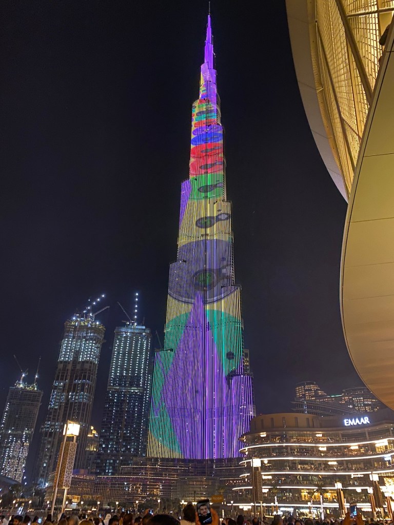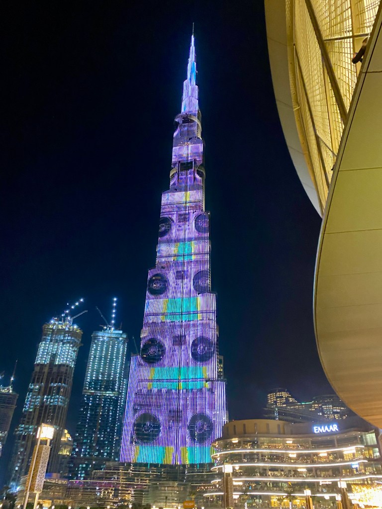 Out exploration led us to fancy lighting. Unaware, turning around, we saw the tallest skyscraper in the world, Burj Khalifa. The backdrop featured an amazing light show accompanied by water fountains. After enjoying an unexpected and delightful spectacle, we headed back to our apartment.