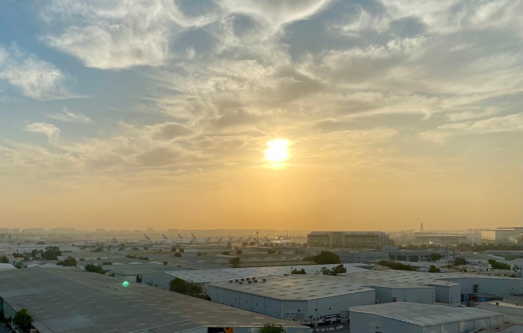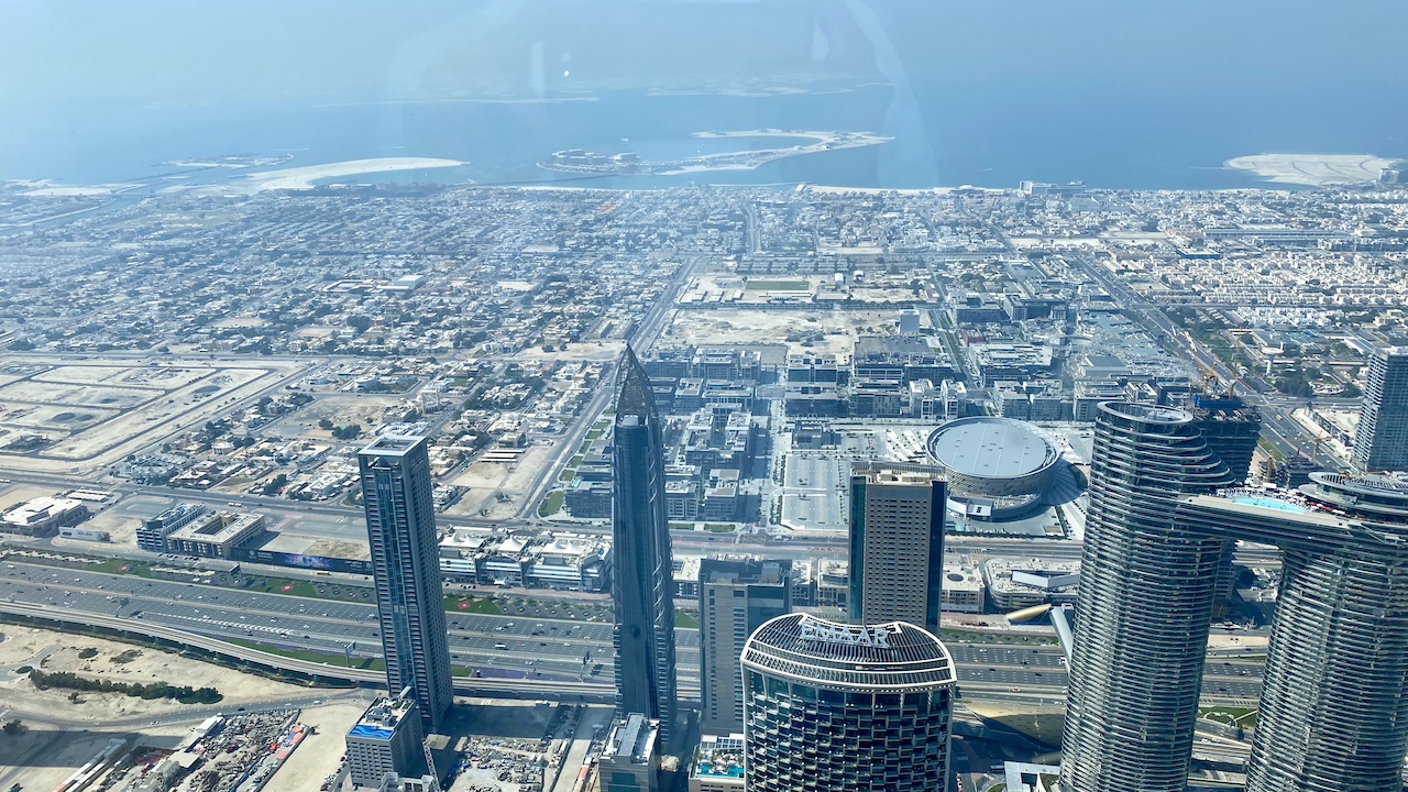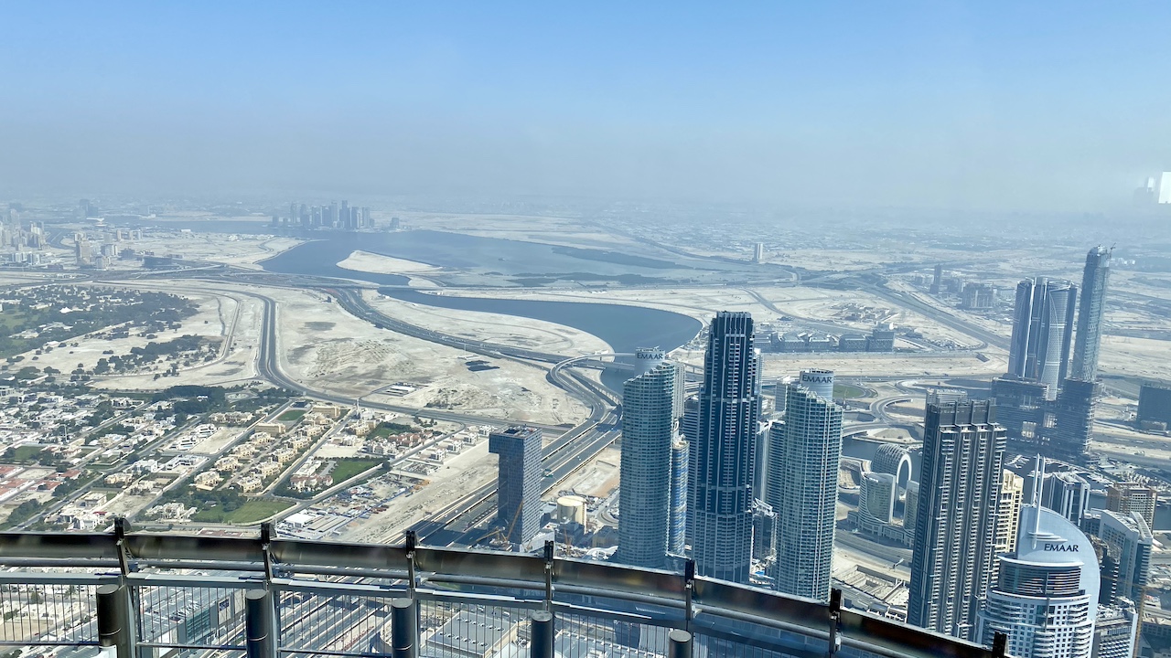 It was second day in Dubai and we discovered our apartment had a great sunrise view just over the Dubai airport. For today, we had booked a package which included visit to Burj Khalifa and Desert Safari. We went out of the hotel room, waved our hands to stop a cab and headed to Burj Khalifa. Uber was double the price, so we ditched it. Arriving at the Burj Khalifa, we joined a queue to have our tickets scanned. We had bought the tickets to visit the 125th floor rather than 148th floor as the latter was way too expensive. We got into the elevator and man, it was way too fast. In around a minute, we were at the 125th floor. The observation deck had a good 360 degree view. We could go to the 124th floor as well which had an outdoor terrace. The fence to the terrace was too high for safety so felt almost like being indoors.