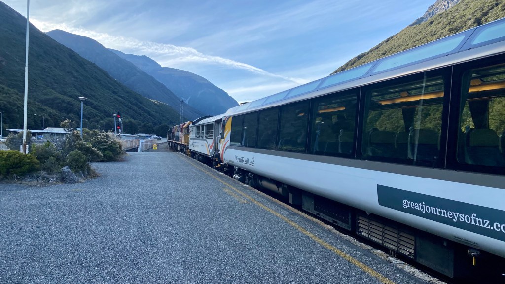 Of course, angrezi me bola ye bhaiyya ne. Waha to hame thodi tension ho gayi. Phir jab hamne double check kiya to dekha, petrol hi daalna tha. Petrol wale bhaiyya yaha thoda sa sharminda ho gaye and maafi maangne lage. Hamne bhi maaf kar hi diya, kyun ki bhaiyya funny bhi the. Petrol daala, aur gaadi wapis kardi. Thodi der me TransAlpine train se travel karna tha. Ye train west coast me Greymouth se hokar east coast me Christchurch tak jaati hai.