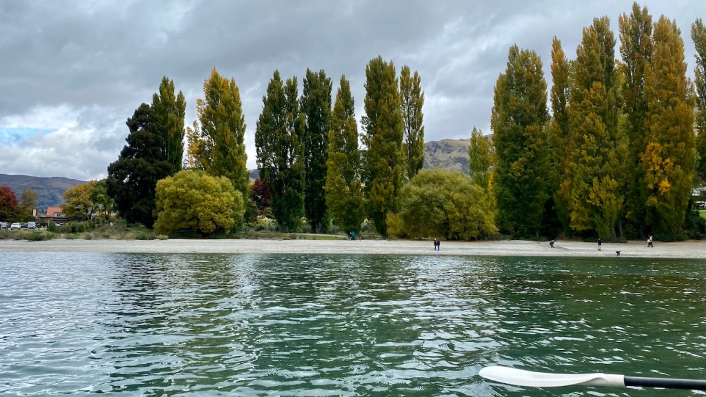 Waha se Nikala to dekha ki aage ka raasta band tha. Shayad kuch accident hua tha. Kuch 15 mins hamne wait kiya ki shayad raasta clear ho jaaye, par aisa nahi hua. To hamne gaadi piche modli. Zindagi me bhale hi aage badhte raho par car to piche mod hi sakte hai. Ham wapis Wanaka chale gaye aur ped wale lake me kayaking ke liye chale gaye. Bahot maza aaya. Ducks ko thoda pareshan bhi kiya. Actually, khel rahe the. Unhe ham chase kar rahe the par wo bahot tez hote hai paani me. Iske baad ham wapis Queenstown ke liye nikal gaye. Ab raasta bhi khul gaya tha. Raaste me bahot saare ghats the to ham ek pull over point me ruk gaye.
