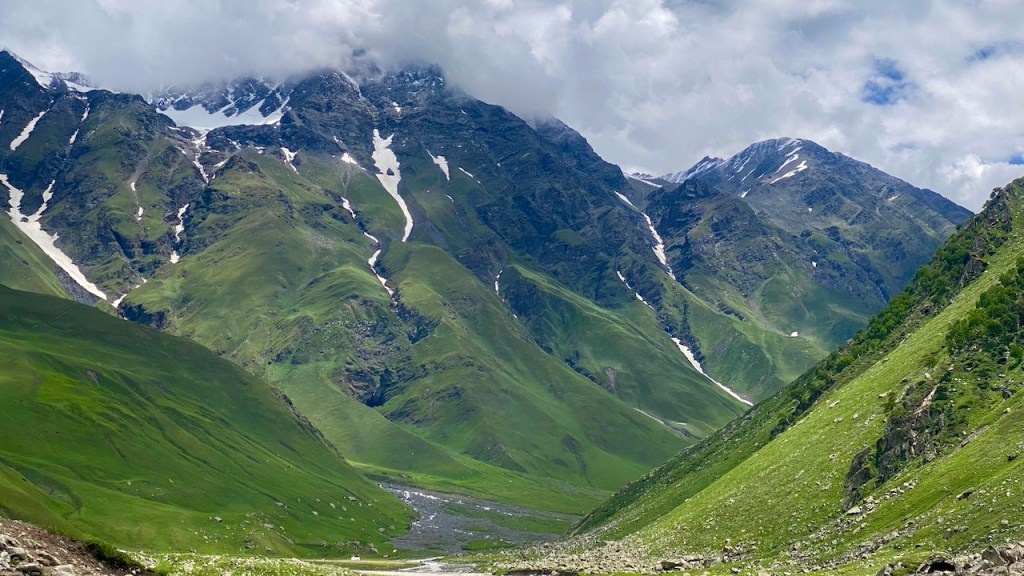 We started the day early with a refreshing cup of morning tea around 6 AM. The sky was mostly clear, dotted with patches of clouds. By 7 AM, we were enjoying a breakfast of French toast, which gave us the energy needed for the day ahead. After breakfast, we began unpitching our tents, preparing for a trek that would cover around 6 kilometers and an altitude gain of approximately 500 meters. The day’s journey would take us beyond the treeline and into the welcoming embrace of the meadows.