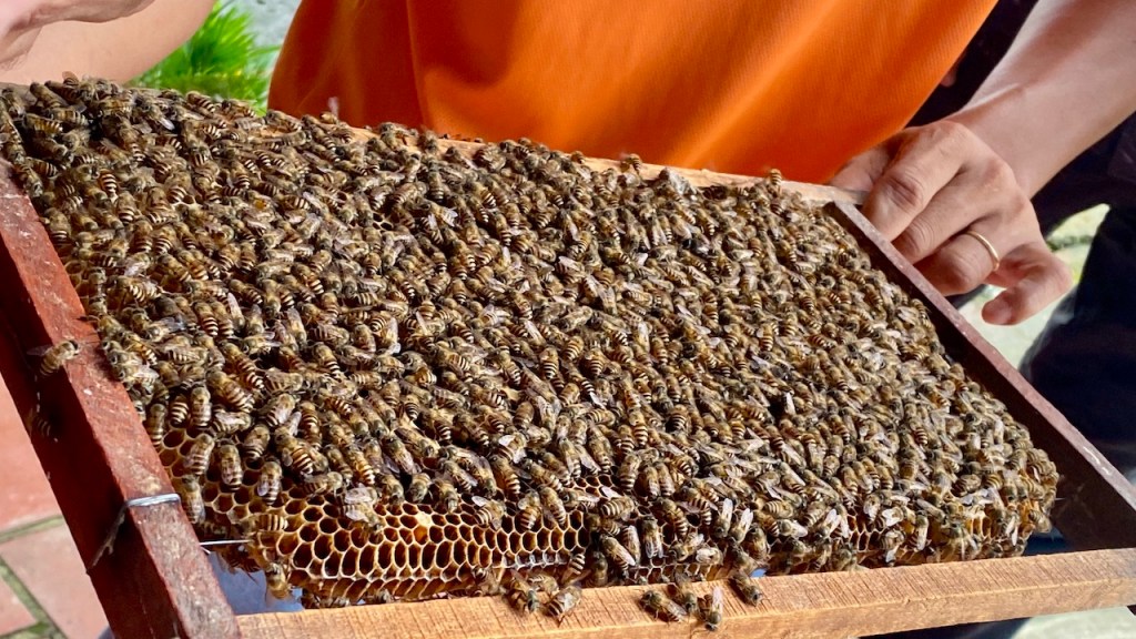 Our first stop was a local workshop where we saw how coconut-based chocolates and other items were made. While the process wasn’t particularly captivating, it was interesting to see the local craft. We then visited a bee farm, where I tried honey tea—delightfully sweet and aromatic. Holding a honeycomb alive with bees was a nerve-wracking yet memorable experience; I was cautious not to drop it or agitate the bees.
