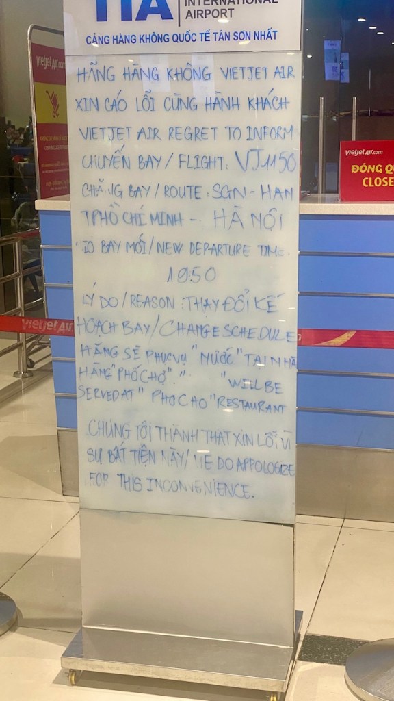 I reached the airport around 3 PM for a 4:50 PM flight, only to find a notice at the boarding gate. Using Google Translate, I learned that my flight was delayed by over three hours. With nothing else to do, I grabbed a coffee and killed time watching the India vs. New Zealand Test match on my phone. Unfortunately, both the Indian cricket team and the airline managed to disappoint me. Eventually, I boarded the flight and arrived in Hanoi. After landing, I booked a Grab cab, again using the trusty method of sharing a photo of my location to ensure the driver could find me easily.