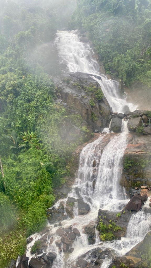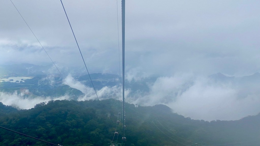 Since we had pre-booked single-entry tickets, we went straight to the cable car station. The 20-minute cable car ride itself turned into an adventure, with strong winds and heavy rain making the ride thrilling. Along the way, we passed waterfalls and lush green mountains, making it a visual treat despite the gloomy weather.